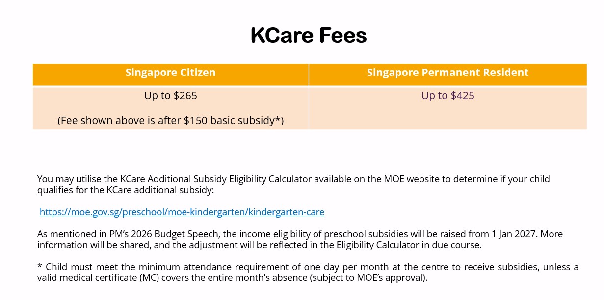 KCare operates from Monday to Friday, 7am to 7pm, including school holidays. It is closed on public holidays and up to 6 additional days each year.
